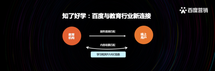 知了好學提供教育O2O平臺,教育機構以門店為單位入駐,以距離優先排序展現,滿足用戶選擇周邊的教育產品的需求。除此之外,百度上還有大量對于教育內容的需求,而通過知了好學這個平臺,我們的教育機構就可以實現,應用戶需求發布內容,多場景觸達,雙向溝通。知了好學整合生態流量,深耕教育行業內容流量,由入駐機構自己生產內容,百度提供免費分發,實現多場景展現。基于內容生產&服務閉環數據后臺的搭建及在線教育精選商城的打造,通過門店會員的方式解決成本問題,通過內容+服務雙通道建設的解決渠道拓寬問題,通過精品內容建立信任感,解決品宣問題,全面解決教育品牌營銷獲客痛點。