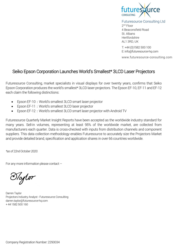 愛普生EF-11商務激光投影機整機尺寸只有175*175*65mm,相當于2/3張A4紙大小,整機重量約1.2kg,是目前全球最小的3LCD激光投影機。商務會議、銷售演講、辦公出差只需隨便攜帶一個公文包,甚至一個女士挎包都能放得進去,外出攜帶毫無負擔~