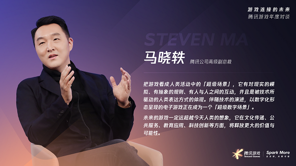 隨著數(shù)字化進程不斷加速,虛實融合的世界離我們越來越近。游戲,正站在一個充滿各種可能性的時代路口。馬曉軼在會談中提到,如何用游戲中的技術和能力去連接現(xiàn)實的世界和人,激發(fā)出更多的想法、嘗試和興趣,創(chuàng)造更大的社會價值,是騰訊游戲致力實現(xiàn)的目標。