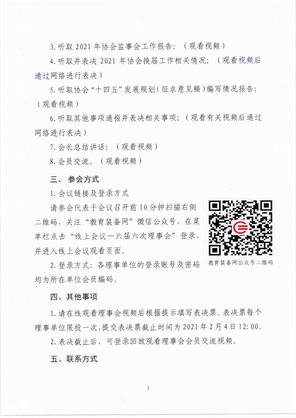 鑒于當前國內多地出現多點、零星、散發新冠肺炎病例,根據國務院聯防聯控機制相關通知精神,原定于2021年1月14-16日在江西省南昌市召開的中國教育裝備行業協會六屆六次理事會暨六屆十次常務理事會,改為采用視頻會議形式舉行,現將會議有關事項通知如下: