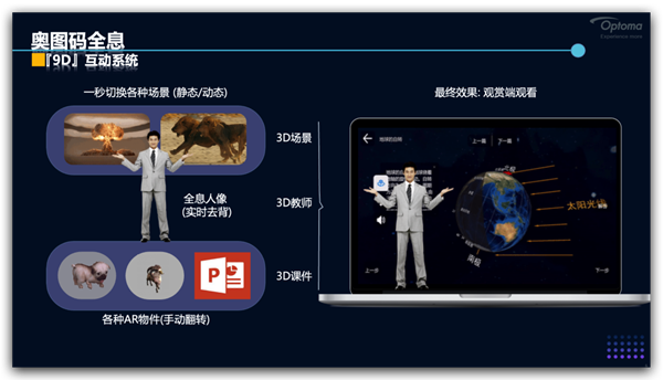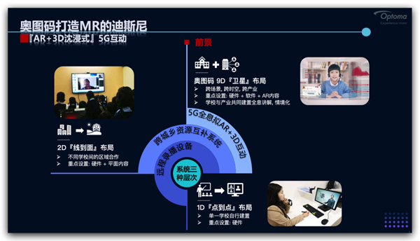 從最初的1D,到2D,遠程教育不斷的發展,5G的到來,AR技術的不斷成熟,升級/優化智慧化教育體系勢在必行,奧圖碼立志打造MR的迪斯尼,帶大家進入9D智慧教育時代,具體細節將在本次論壇演講中進行揭秘。