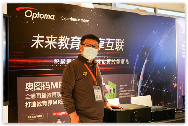 筆者同時發現,展臺上陳列了幾臺奧圖碼商教投影機,當下筆者也采訪了奧圖碼投影產品事業部 馮新華先生,