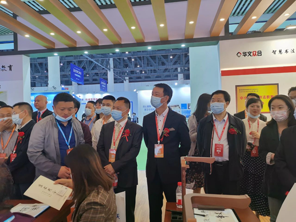 在此次裝備展中,華文眾合智慧書法教室吸引了省市區縣眾多領導和學校的關注,展會現場異常火爆。教育部相關部門,四川省教育廳二級巡視員王羽,四川省經濟和信息化廳二級巡視員蘇平及相關處室及協會、學會,中國教育裝備行業協會會展部主任張繼芳,四川教育裝備行業協會會長張林祥;各地市州教育局及相關部門等一行領導參觀了華文眾合展廳,在了解并體驗了華文眾合第七代智慧書法教室的筆尖跟蹤技術是基于人工智能及大數據等技術在教學領域的最新應用成果后給予了高度評價。