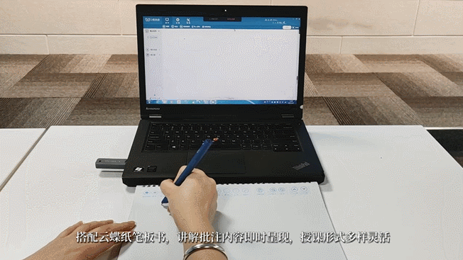 課堂從線下搬到線上,雖然授課的形式略有變化,但授課整體思路并沒有改變。云蝶支持授課大綱、課程資料、視頻資源等上傳并在線播放;在教學一體機上進行的課件播放、批注等操作,由線上云班平臺實現;在傳統黑板上書寫的板書,由云蝶板書和點陣筆書寫板書代替,重難點講解實時呈現。與線下無異的授課方式,將學生瞬間拉進課堂。