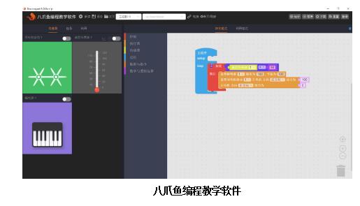 軟件類:八爪魚編程教學軟件:具有數據實時顯示和采集功能的圖形化編程軟件;提供了曲線圖、數據表、動畫等數據顯示功能;能夠精準、快速的反應出學生操作過程中數據變化;支持圖形化編程、C++和Python代碼編程;支持圖形化編程和C++代碼編程之間的實時轉譯;支持圖形化編程和Python代碼編程之間實時轉譯。