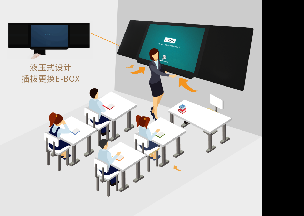 Box設(shè)計,將視頻卡、OPS等易損部件全部集成在一個小盒子里,如果出現(xiàn)故障,只需直接拉出更換備份E-Box。無需等待上門維修服務(wù),不耽誤學(xué)校正常教學(xué)活動。