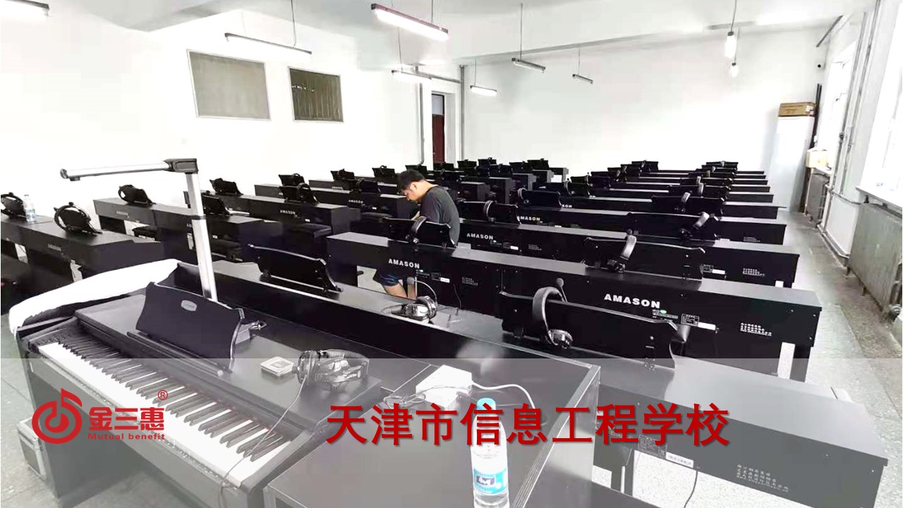天津市信息工程學校的數字音樂電鋼琴教室正式開始使用,本校電鋼琴教室由北京金三惠科技有限公司負責提供、安裝、培訓。