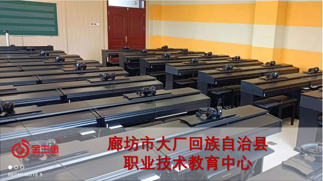 廊坊市大廠回族自治縣職業技術教育中心的電鋼琴教室教學管理系統正式開始使用,本校電鋼琴教室由北京金三惠科技有限公司負責提供、安裝、培訓。