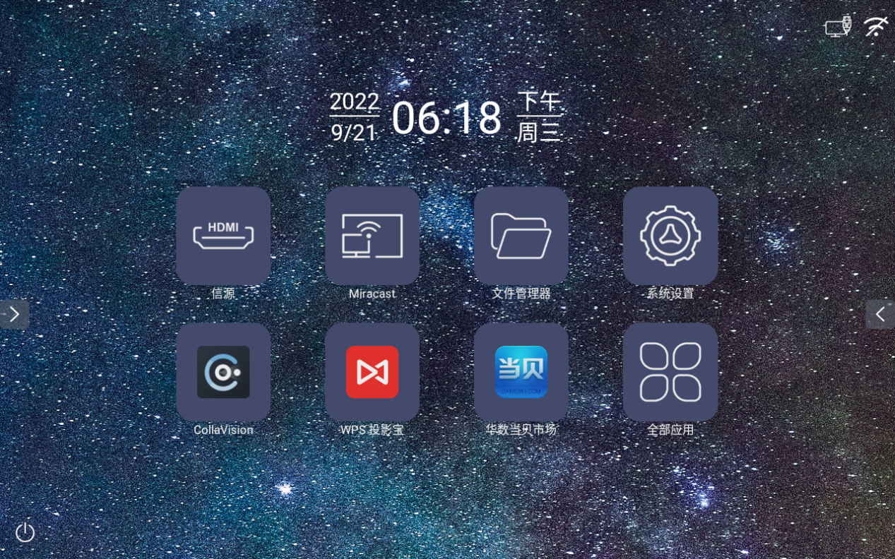 搭載安卓11智能系統之后,理光PJ LU300N的智慧主頁就像一個大屏投放的智能平板桌面:
