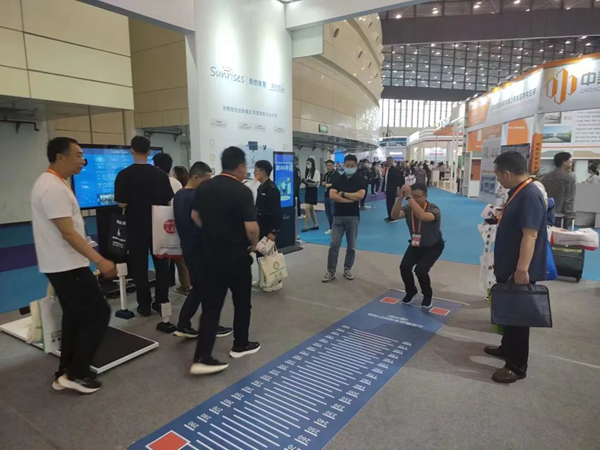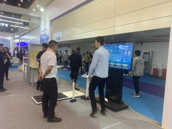 展會現場,有大批來賓參觀我們的展位,在工作人員的講解下體驗智慧體育產品,感受著AI賦能體育的全新模式。