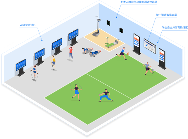 方案將規劃建設智慧體育操場、體質健康監測教室、智慧體育走廊等空間,采用固定+移動靈活的部署方式,用AI構建良好運動氛圍,全方位支持體育課堂,滿足課堂教學、測試、課后鍛煉、區域管理等需求。