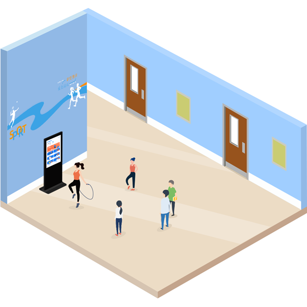 智慧體育走廊整體的設計和布局都相對靈活,主要應用于學校現有樓道走廊、宿舍公共區域、體育器材區、教室、大廳及其他閑置等公共區域場地,方便學生課后或課間使用,構建更適合孩子的體育運動氛圍。智慧體育走廊的設備主要以體鍛屏為主,配置趣味鍛煉項目,激發孩子的運動興趣,增強孩子的身體素質。