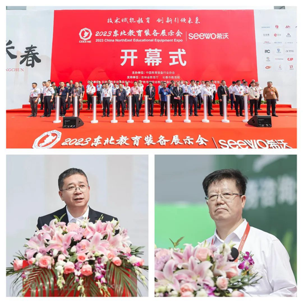 此次展會是中國教育裝備行業協會打造的第一個區域性展會,以“技術賦能教育 創新引領未來”為主題,近300家行業優質企業齊聚,展品覆蓋通用教育裝備、教育信息化裝備、后勤及學校安全設備、音體美勞教育裝備等各類優質教育裝備產品和服務,以裝備引領數字轉型,更好地服務師生、服務教學、服務科研、服務管理,服務教育信息化、現代化發展。開幕式上,教育部關心下一代工作委員會常務副主任、中國教育裝備行業協會專家委員會主任王富,中國教師發展基金會秘書長宋家樂,教育部教育技術與資源發展中心副主任趙憲志,吉林省教育廳黨組成員、副廳長劉青川,長春市人民政府副秘書長李林峰,中國教育裝備行業協會副會長夏國明,江西省委教育工委委員、教育廳副廳長程裕秋,長春市教育局黨組書記、局長崔國濤,長春市商務局副局長蔡德軍等重要領導親臨現場,共同啟幕。劉青川副廳長和崔國濤局長分別致辭,表達了對本次展會的誠摯祝賀。