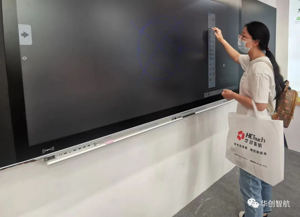 本次展會,華創(chuàng)智航攜手合作伙伴,在現(xiàn)場展示了以納米銀電容智慧黑板為主的多款設備。華創(chuàng)智航納米銀電容智慧黑板提供86、98和110三個尺寸可選,滿足不同教室的需求。純平外觀、高清顯示,178°超廣視角,看得更清晰更舒適。全屏可支持板書,超大書寫尺寸,具有一鍵開關機、定時開關機等功能,軟件兼具易用性和包容性,多種書寫筆、互動工具、教學工具、可實操資源隨調隨用;強大的備授課軟件,輕松預設并呈現(xiàn)趣味互動課堂。