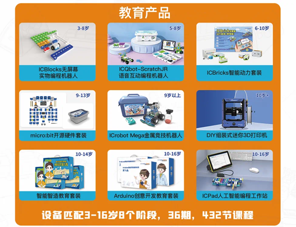 ICREATE 3D和ICrobot Mege金屬智能編程機器人是艾克瑞特面向9-10青少年推出的科技產品,兩款機器人各具特色,全部配有相關教學課程,適合機構、中小學等教學應用場景。