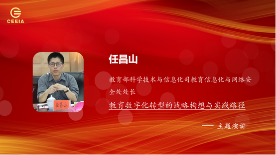 任昌山作了題為“教育數(shù)字化轉(zhuǎn)型的戰(zhàn)略構(gòu)想與實(shí)踐路徑”的主題報(bào)告,對教育數(shù)字化轉(zhuǎn)型的相關(guān)政策進(jìn)行了解讀。