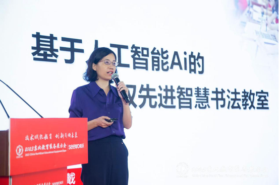 北京華文眾合科技有限公司董事長助理戴敏作《基于人工智能AI的雙先進(jìn)智慧書法教室》報(bào)告