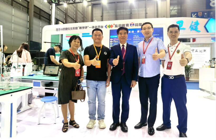 【深圳市教育局黨組成員、副局長(zhǎng)趙立(右三)蒞臨碼隆展位參觀指導(dǎo)】