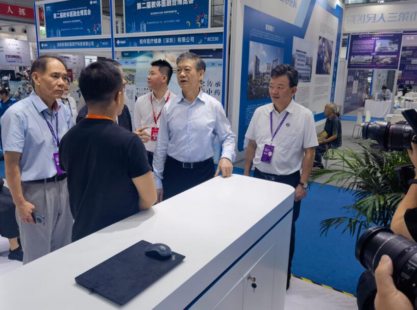 【深圳市福田區(qū)委常委、統(tǒng)戰(zhàn)部部長(zhǎng)吳歡(右二),蒞臨碼隆展位參觀指導(dǎo)】