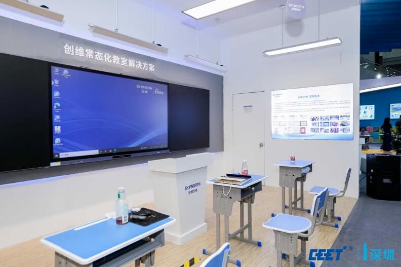 黨的二十大報告指出,教育是全面建成社會主義現代化強國的基礎性、戰略性支撐,要堅持教育優先,發展科技,自立自強,人才引領驅動,開辟發展新領域、新賽道,塑造發展新動能、新優勢,充分體現了我們黨一貫重視教育發展這一戰略的先手旗。創維光電從教學過程、教學管理、教師培育、教學環境等入手,在現場搭建了創維常態化教室,為參展觀眾帶來了耳目一新的體驗。