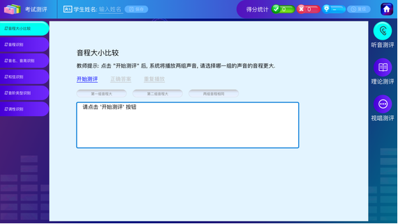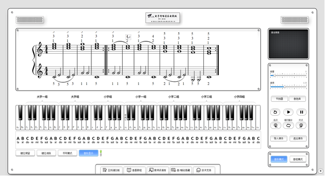 音基訓練與測評系統是一款功能強大的教學工具,為音樂教育提供了全面的支持和便利。支持視唱、聽音練耳、音基理論等多種教學模式,滿足不同音樂教學需求。學生可以通過點擊五線譜音符進行練習,實現互動式學習體驗。提供節拍器輔助練習與測評,幫助學生更好地掌握節奏感。支持根據教學進度調節播放/測評速度,讓教學更加靈活。可自定義題目,包括添加、刪除視唱題目,支持通用的MIDI文件和.3F數字樂譜格式。附贈課件轉換工具,可將數字樂譜格式轉換為系統適用的視唱題目格式,提高教師轉換效率。預設七種視唱題型,每種題型包含不低于15種視唱題目,滿足不同難度需求。教師可指定廠家預設題型與題目,選擇適用于教材的視唱題目,實現個性化教學。我們的音基訓練與測評系統是音樂教育的得力助手,為教師和學生提供了全方位的支持和便利,助力音樂教學更加高效、有趣。