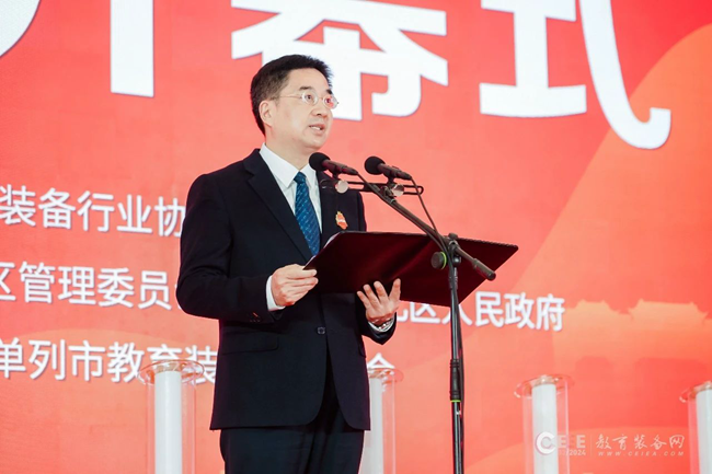 開幕式上,重慶市委教育工委書記、市教委主任劉宴兵,重慶兩江新區黨工委委員、管委會副主任張黎分別致辭,科大訊飛董事、高級副總裁聶小林代表參展企業發言,中國教育裝備行業協會副會長夏國明作了講話。