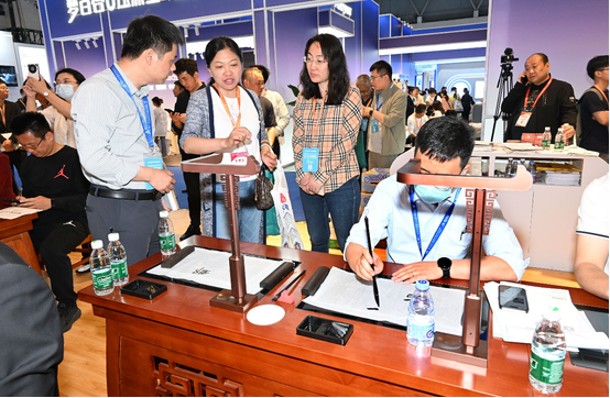 發(fā)布儀式上,華文眾合董事長向大鳳致歡迎辭并介紹第9代智慧書法教室,與會(huì)嘉賓共同為華文眾合第9代智慧書法教室剪彩。教育部關(guān)心下一代工作委員會(huì)常務(wù)副主任、中國教育裝備行業(yè)協(xié)會(huì)專家委員會(huì)主任王富發(fā)表致辭,王富主任對(duì)第9代智慧書法教室的發(fā)布表示祝賀,并對(duì)華文眾合的不斷創(chuàng)新給予肯定,他在講話中說到:“華文眾合十年來專注做好智慧書法這一件事,發(fā)展迅速,所研發(fā)的智慧書法系統(tǒng)具有技術(shù)專業(yè)性、教學(xué)實(shí)用性,在行業(yè)內(nèi)起到很好的引領(lǐng)作用,以專業(yè)和專注贏得市場的認(rèn)可,堪稱業(yè)界標(biāo)桿! 科技賦能傳統(tǒng)是一件非常有意義的事情,值得我們共同努力、共同傳承。以傳統(tǒng)文化浸潤心靈,以傳統(tǒng)文化培根鑄魂,以傳統(tǒng)文化培養(yǎng)人才。”會(huì)后,嘉賓對(duì)第9代智慧書法教室進(jìn)行深度體驗(yàn)與指導(dǎo)。