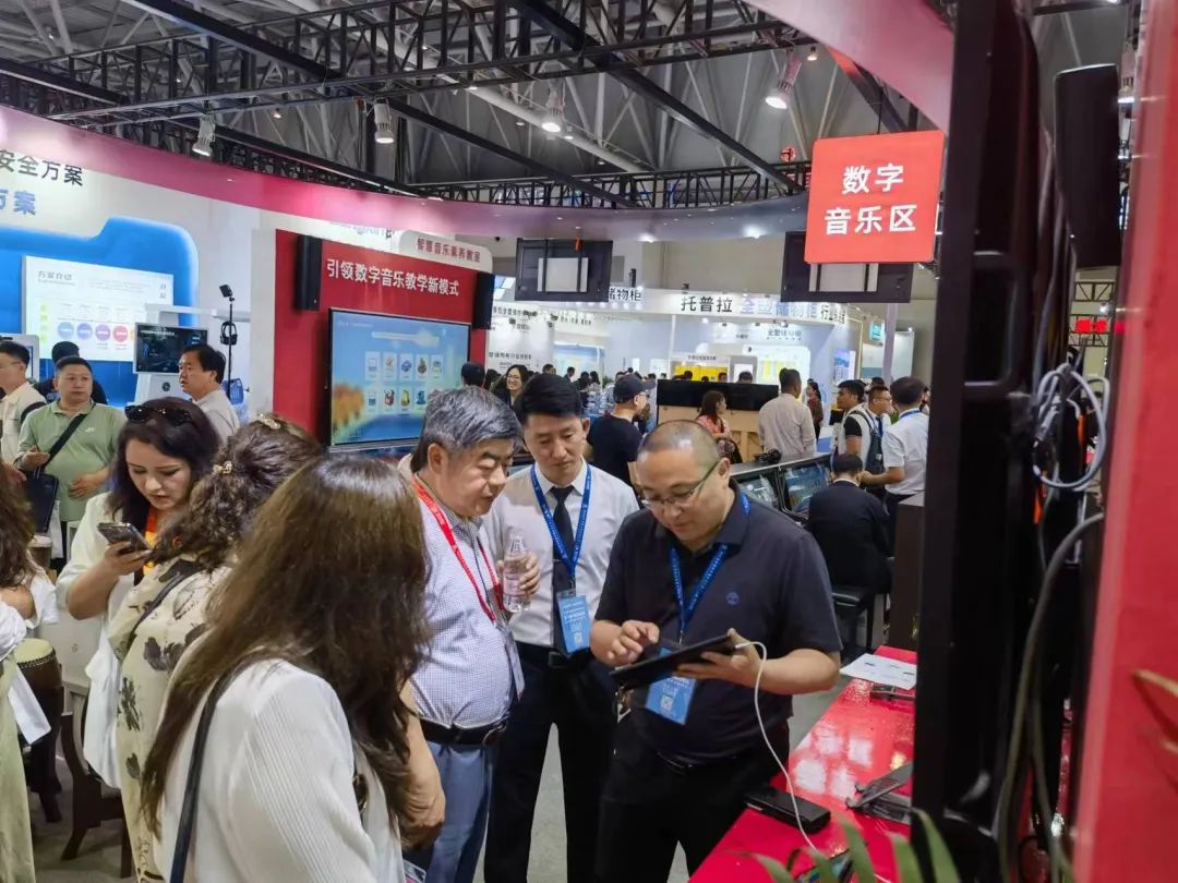 展會現場分為數字音樂展區、美育教育展區和校園聲學展區,以產品展示、軟件演示、工作人員講解、音樂活動等方式,緊跟國家政策,聚焦行業熱點,展示了助力教育數字化發展的創新理念和科技成果,為實現“同在藍天下,共享音樂夢”的夢想而努力奮斗。