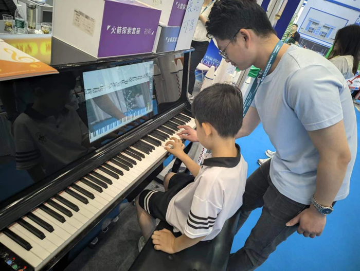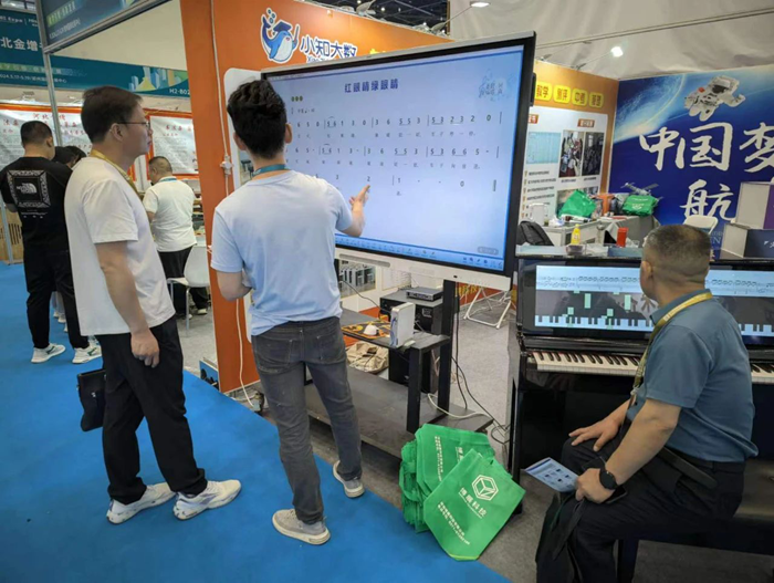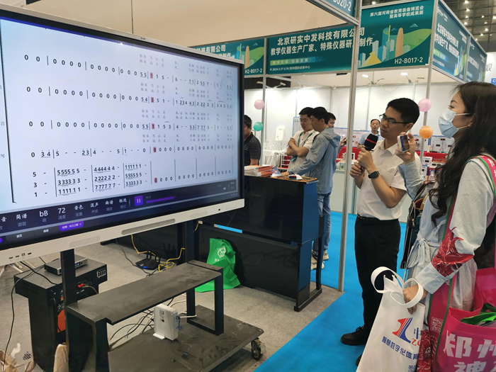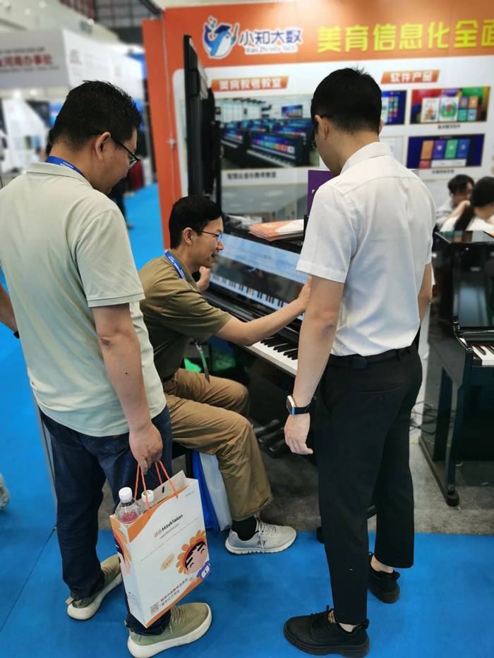展會(huì)現(xiàn)場(chǎng),工作人員熱情地接待了來訪的嘉賓,詳細(xì)介紹了小知大數(shù)智慧音樂教室、智慧美術(shù)教室、藝術(shù)素質(zhì)測(cè)評(píng)方案、美育考試測(cè)評(píng)方案等優(yōu)勢(shì)產(chǎn)品。