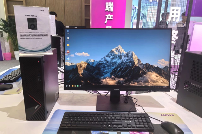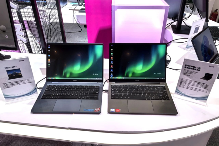 在紫光計算機展位,重點展示了搭載全新英特爾®酷睿™桌面處理器(第14代)的商用臺式機UltiDesk 500 G2系列;擁有雙NVMe M.2 SSD接口+雙DDR5內存插槽的商用輕薄筆記本UItiBook Pro 14 G2;采用國產化處理器的商用臺式機UNIS D3890 G2(兆芯KX-U6780A八核處理器)、UNIS D3830 G3(海光3350八核處理器)、UNIS D3811 G2(飛騰D2000八核處理器)、商用筆記本UNIS L3891 G3(兆芯KX-6000G四核處理器)、UNIS L3813 G2(飛騰D2000八核處理器)。此外,新一代商用顯示器、桌面生態配件及相關配套產品也悉數展出。