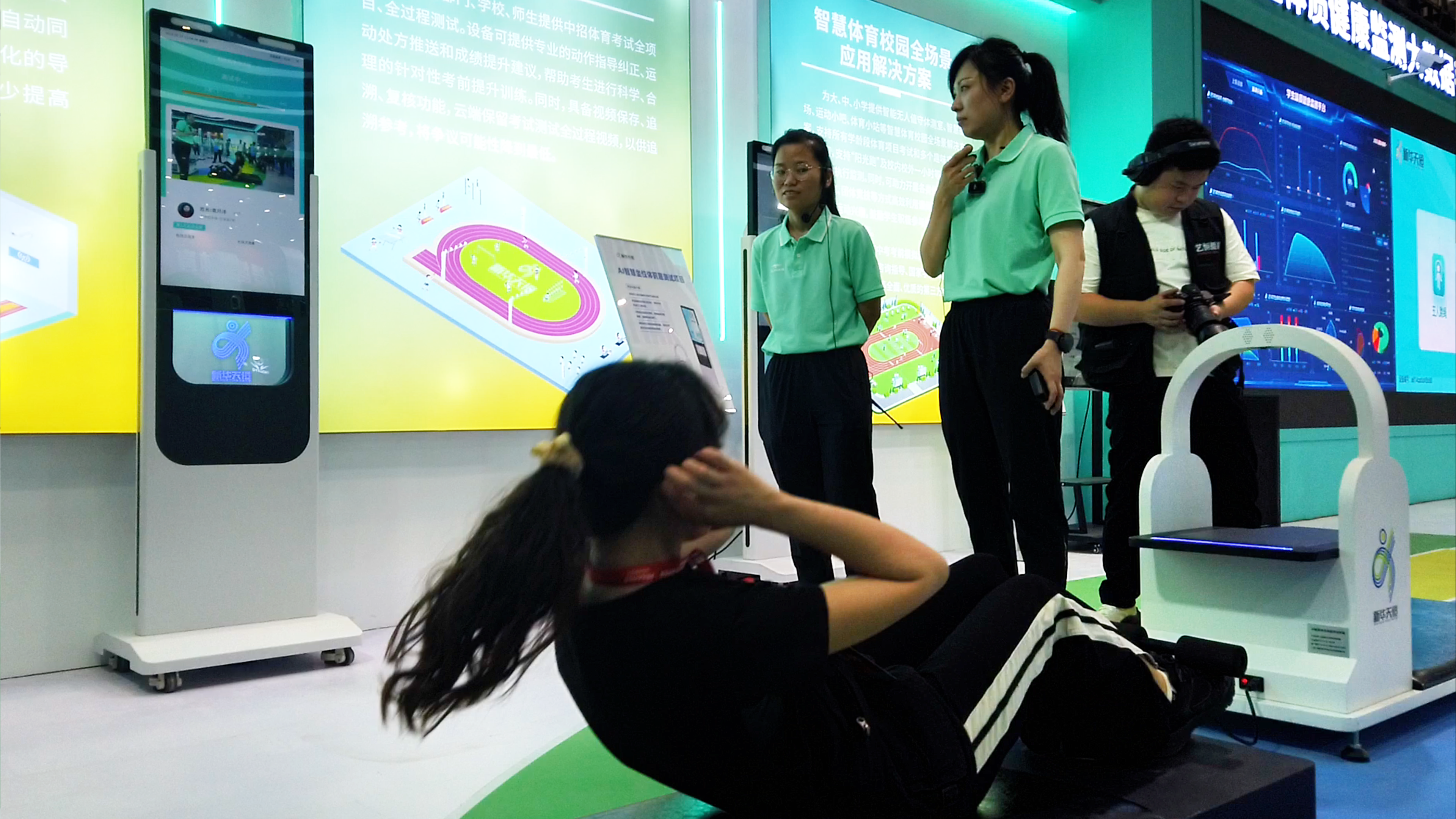 來自鄭州職業(yè)技術(shù)學(xué)院的90后新能源汽車專業(yè)老師史鵬飛,是一個(gè)體育迷,平時(shí)在學(xué)校就經(jīng)常參加運(yùn)動(dòng)比賽。對(duì)于在展會(huì)上首次亮相的“新華天恒”AI智能體質(zhì)健康監(jiān)測(cè)系列裝備和“學(xué)生體質(zhì)健康監(jiān)測(cè)大數(shù)據(jù)平臺(tái)”,史鵬飛直言體驗(yàn)感非常強(qiáng),“很智能也很先進(jìn),有很強(qiáng)的互動(dòng)性,能夠營(yíng)造出很好的運(yùn)動(dòng)氛圍,讓人忍不住想要參與進(jìn)來”。