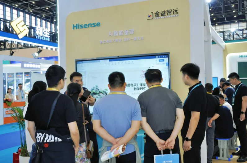 作為本屆展會的獨家冠名商,位于會場“C位”的海信商用顯示也帶來了類型豐富、體驗優越的數字化智慧教室解決方案,現場人氣爆棚。在H2-F001海信展位,海信智慧教育2024年新品全陣容亮相,圍繞課前、課中、課后、管理等教學流程,以場景化方案深度展示了AI等技術賦能下的全新教學圖景。