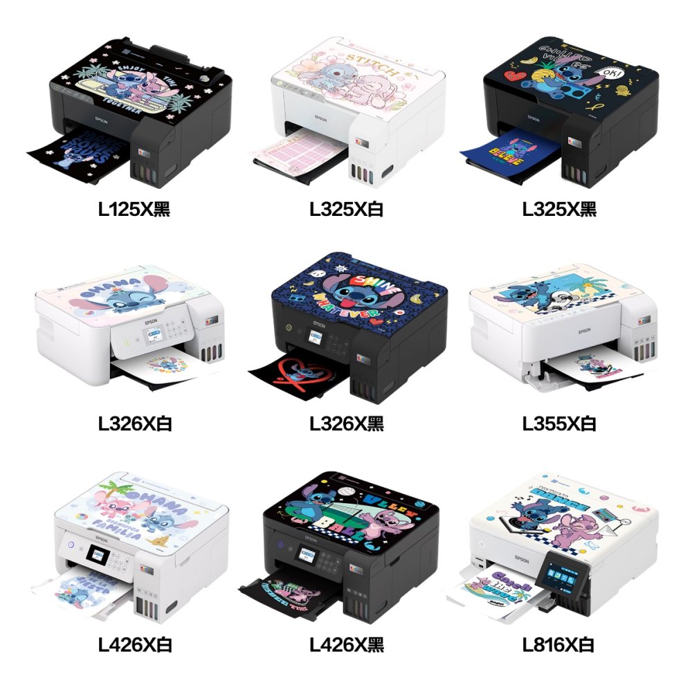愛普生迪士尼史迪奇系列合作款機(jī)身貼膜畫面既有史迪奇活潑萌趣的經(jīng)典畫面,又有史迪奇與安琪同框的有愛時刻,可愛又溫馨;本次還特別推出兩種“閃亮款”貼膜,適用于墨倉式®彩色無線多功能一體機(jī)L426X,局部燙金與鐳射工藝讓這兩款貼膜更加“閃閃惹人愛”。合作款墨倉式®打印機(jī)型號豐富,從入門級家用到高品質(zhì)6色墨倉式®,能滿足多種家庭及小型商用的打印需求,搭配史迪奇系列機(jī)身貼膜,打印機(jī)顏值直接到達(dá)next level,即刻開啟奇趣體驗。