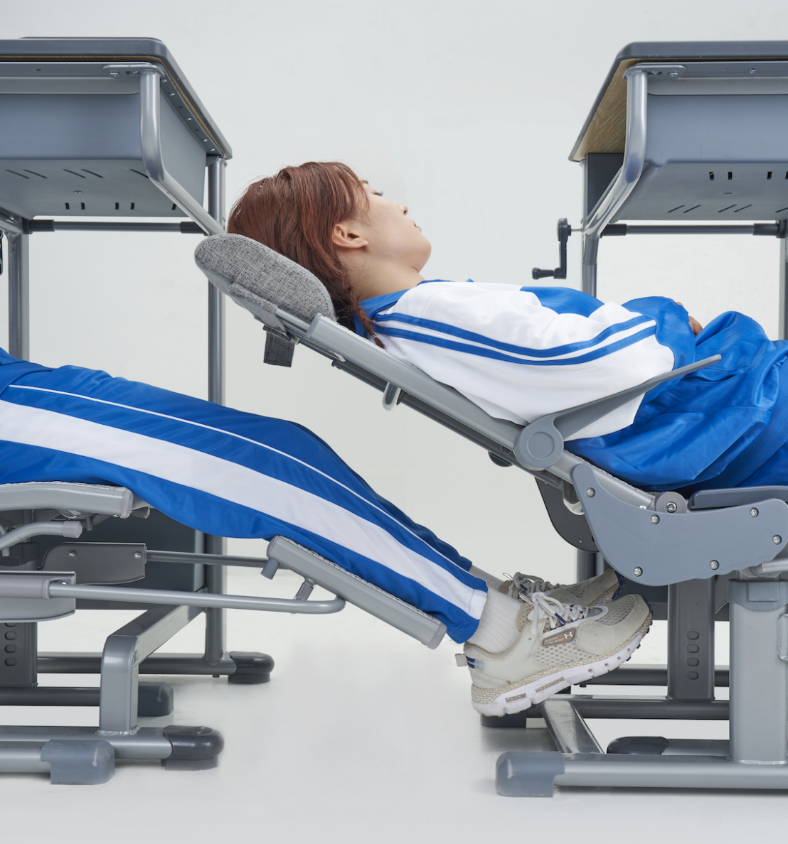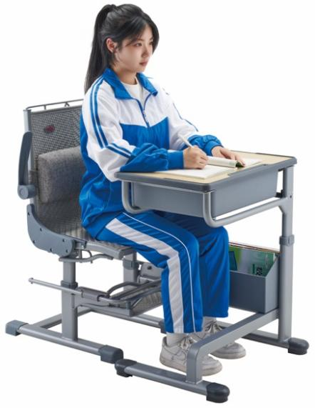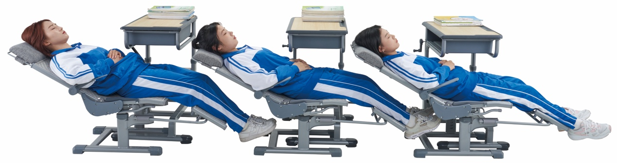 產(chǎn)品在研發(fā)時(shí)充分考慮到教室空間的利用率,午休時(shí)課桌不動(dòng),桌面適當(dāng)抬升高度,將課椅向前移動(dòng),充分利用課桌下方的可用空間和前位椅下的空間,讓平躺午休更加舒適安全。