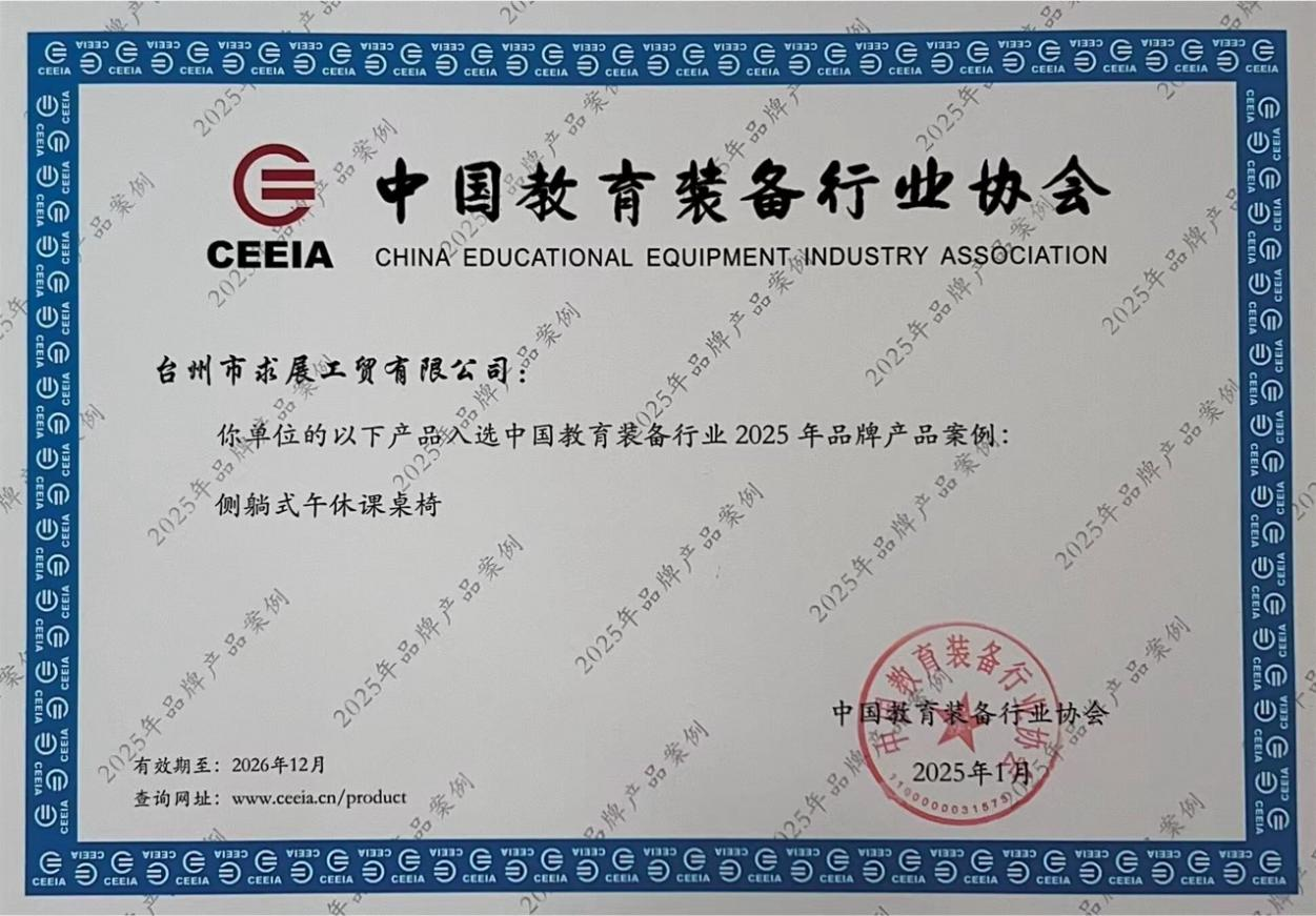 2025年1月,臺(tái)州市求展工貿(mào)有限公司旗下“師生之友”品牌的側(cè)躺式午休課桌椅,經(jīng)過(guò)一年時(shí)間的產(chǎn)品精細(xì)打磨,已成為新老客戶的首選款式,也成功入選中國(guó)教育裝備行業(yè)2025年品牌產(chǎn)品案例。