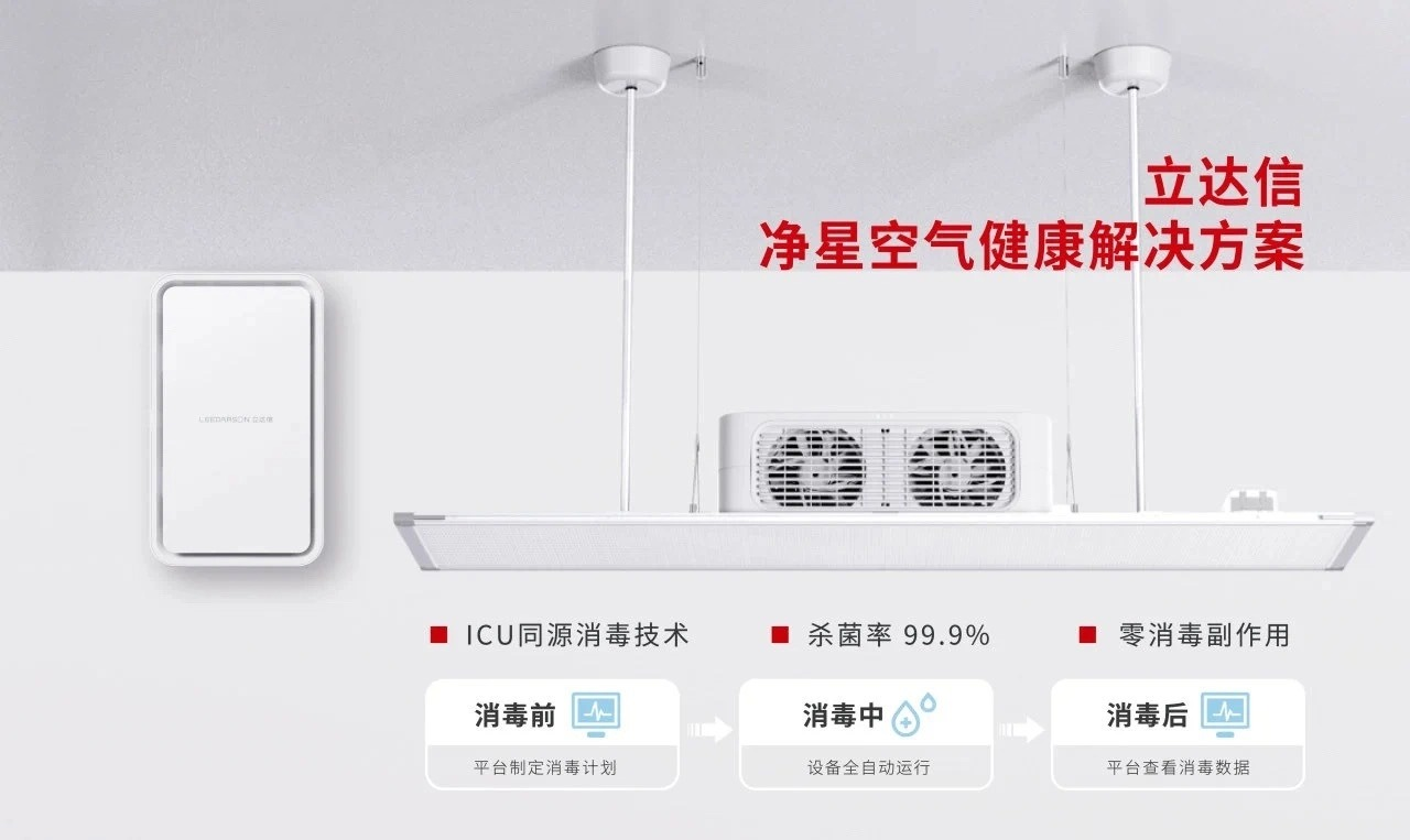 立達信凈星空氣健康解決方案,采用與三甲醫院ICU同源的等離子技術,實現人機共存,保證孩子們的學習時間不受影響,且殺菌實效經國家衛健委備案認證,殺菌率高達99.99%。老師可根據需求制定消毒計劃并自動執行,殺毒完成后自動生成報告,實現過程留痕,方便學校管理,同時設備0耗材,有效節約成本,讓老師更省心。