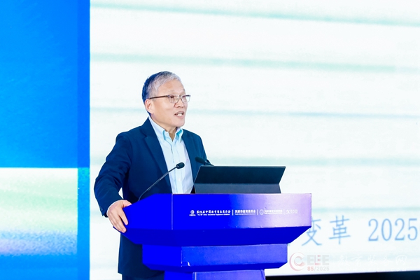 教育部義務教育信息科技課程標準專家組組長、北京航空航天大學教授熊璋作《人工智能與教育變革》主題報告。