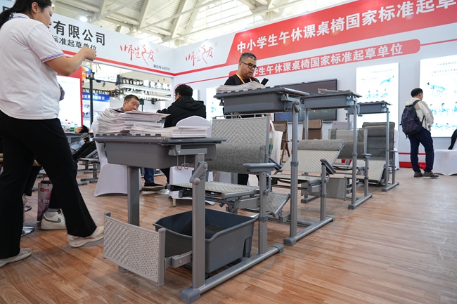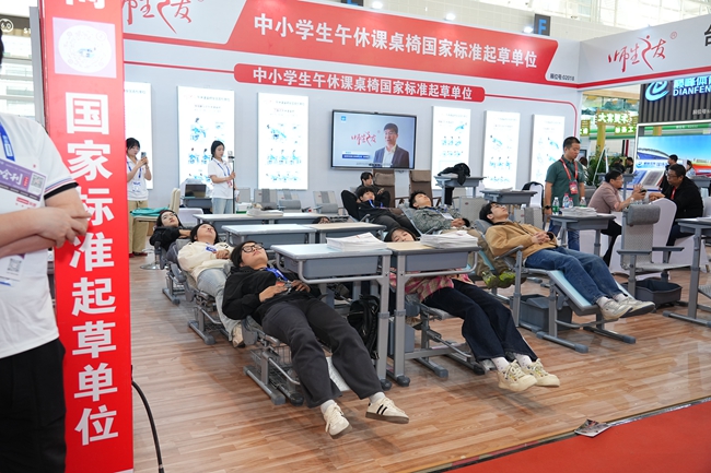 求展工貿(mào)深耕教育裝備領(lǐng)域,致力于為學(xué)校提供創(chuàng)新教學(xué)設(shè)施。此次展會(huì),其側(cè)躺式午休課桌椅成為焦點(diǎn)。該課桌椅設(shè)計(jì)精巧,課桌原位不動(dòng)即可實(shí)現(xiàn)午休功能,有效緩解學(xué)校午休空間緊張問題,為學(xué)生創(chuàng)造良好午休環(huán)境,助力提升學(xué)習(xí)效率,獲得眾多教育工作者與采購人員好評(píng)。