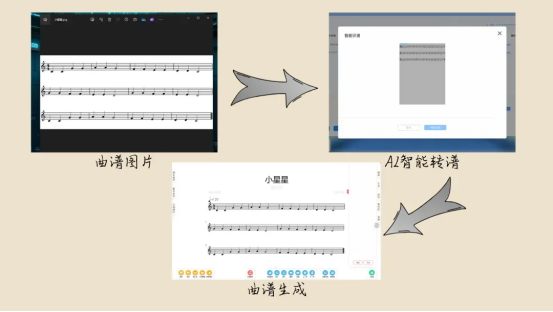 老師可以將圖片、PDF、MP3形式的樂(lè)譜上傳至軟件云端,用AI智能識(shí)譜功能自動(dòng)識(shí)別生成可編輯的電子樂(lè)譜,老師可以自主調(diào)整編輯譜面,再也不用熬夜趕工啦~