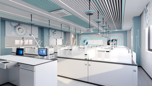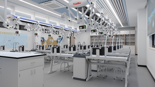 顛覆性設計將水、電、風、網管道集成于可伸縮搖臂中,外觀如太空艙般簡潔科幻,使用時拉出通風管道,閑置時隱藏保持整潔。專利升降水龍頭與內置瀝水架的水槽柜,讓實驗操作更舒適便捷;智能調節的通風與照明系統,為師生創造安全愜意的實驗環境。遼寧省盤錦育才中學在引入“太空艙”S4.0智能頂裝系統之后,實驗室安全事故率下降90%,被評為“省級優秀實驗教學案例”。