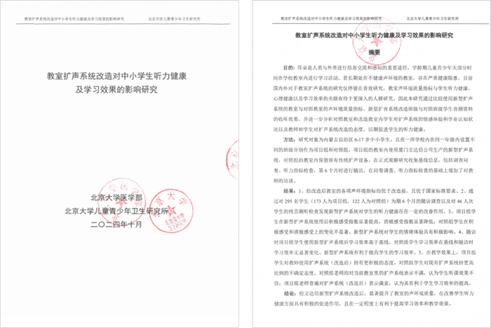 立達(dá)信健康擴(kuò)聲解決方案,從發(fā)布至今,落地了全國(guó)多所名校,獲得廣大師生的好評(píng),同時(shí)北京大學(xué)醫(yī)學(xué)部、北京大學(xué)兒童青少年衛(wèi)生研究所發(fā)布《教室擴(kuò)聲系統(tǒng)改造對(duì)中小學(xué)生聽力健康及學(xué)習(xí)效果的影響研究》報(bào)告結(jié)果表明:經(jīng)立達(dá)信新型擴(kuò)聲系統(tǒng)改造后,顯著提升了教室的聲環(huán)境質(zhì)量,在改善學(xué)生聽力健康方面具有積極的促進(jìn)作用,且在一定程度上提高學(xué)習(xí)效率和教學(xué)效果。