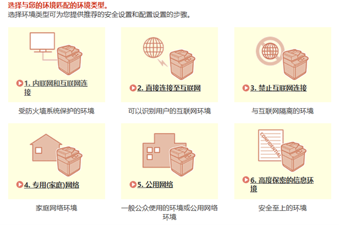 佳能imageFORCE贏系列數(shù)碼復合機可以根據(jù)用戶選擇的使用環(huán)境推薦安全設置