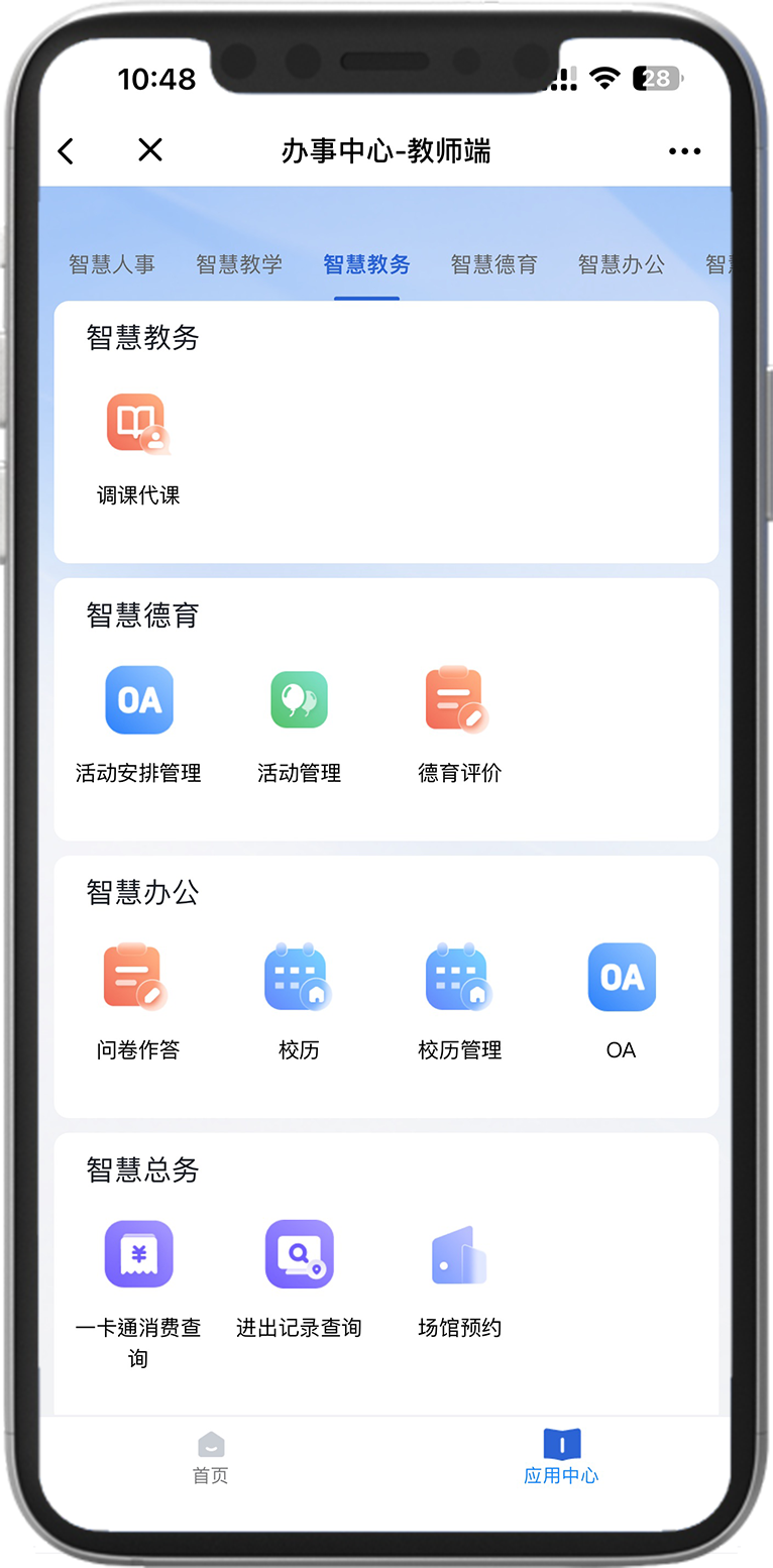 學(xué)校根據(jù)自身組織架構(gòu)與職責(zé)分工優(yōu)化功能布局,構(gòu)建起智慧校園應(yīng)用支撐平臺(tái),涵蓋辦公、教務(wù)、德育、檔案、宿管、后勤、家校、訪客、報(bào)名九大業(yè)務(wù)核心模塊,滿足了各個(gè)部門在教育教學(xué)實(shí)施過程中對(duì)“人、財(cái)、物”三方面的管理需要,實(shí)現(xiàn)信息化與教育教學(xué)的深度融合。