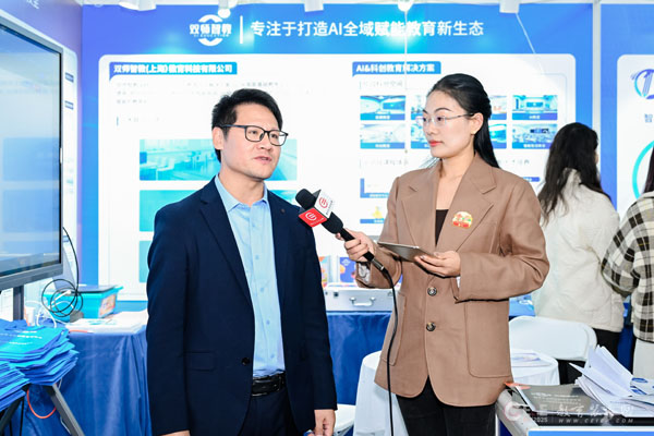 展會現(xiàn)場,雙師智教(上海)教育科技有限公司總經理孫華亭接受本站采訪。