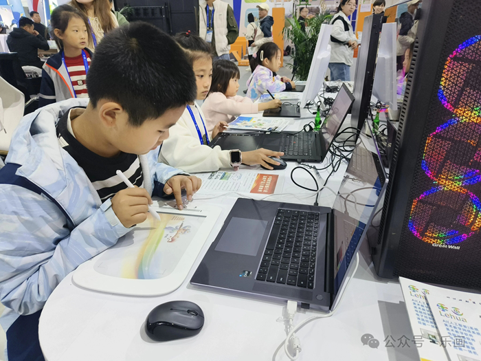 展會第二天是星期六,迎來了“一起快樂繪畫”的少年兒童