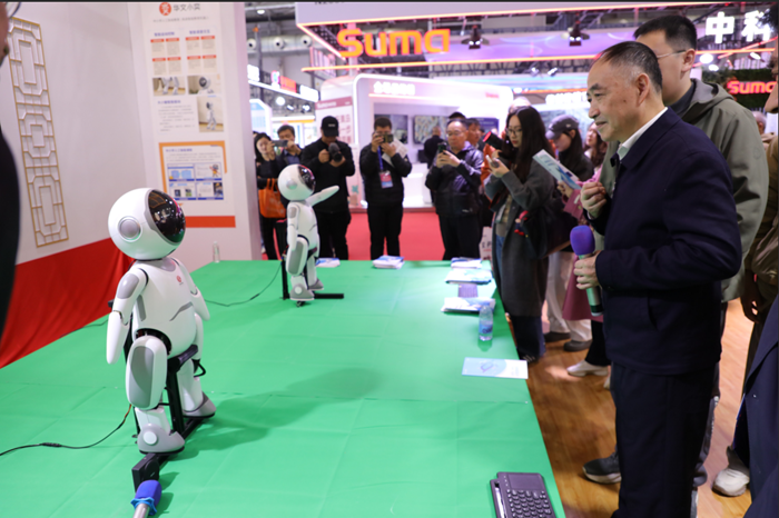 華文眾合攜國(guó)內(nèi)首款中小學(xué)具身教育智能機(jī)器人亮相第86屆中國(guó)教裝展
