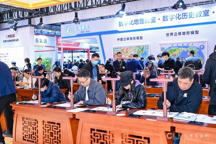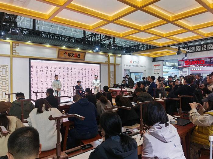除了華文小奕機(jī)器人,華文眾合展位的核心產(chǎn)品第九代智慧書(shū)法教室和智慧粉筆教室同樣備受矚目,其傳統(tǒng)與科技的完美結(jié)合,引得教育工作者、高校領(lǐng)導(dǎo)及對(duì)書(shū)法感興趣的社會(huì)各界人士紛紛駐足參觀體驗(yàn)。