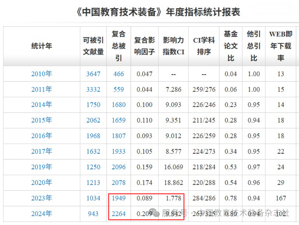 2025版《中國學術期刊影響因子年報》發布顯示《中國教育技術裝備》期刊影響力大幅提升