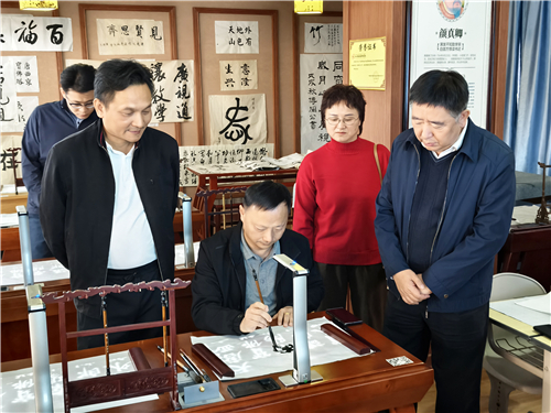 在董事長陳登貴的陪同下,調研組一行走進廣視通創新教育裝備體驗中心,參觀了創新智慧實驗室、中學AI教考實驗室、智慧書法教室、數字地理室等展廳,近距離感受各場景下數字化教育裝備的創新應用與實踐成果,詳細了解廣視通的發展歷程、經營狀況、業務拓展等方面,對公司的經營理念及產品給予了充分肯定,并勉勵企業要持續創新,完善人才培養機制,為中小企業的數字化轉型發展賦能。