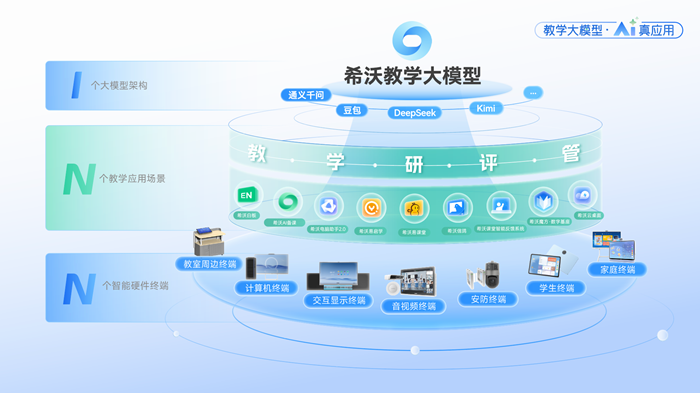 希沃“1+N+N”AI技術(shù)體系構(gòu)建了覆蓋教育全場(chǎng)景的智慧解決方案,旨在實(shí)現(xiàn)三大核心目標(biāo),一是構(gòu)建AI驅(qū)動(dòng)的區(qū)域教育治理新機(jī)制,二是推動(dòng)教學(xué)與教研模式智能化轉(zhuǎn)型,三是建立支持學(xué)生個(gè)性化發(fā)展的新路徑。通過“技術(shù)+場(chǎng)景”深度融合,構(gòu)建了“AI驅(qū)動(dòng)、數(shù)據(jù)賦能”的區(qū)域教育高質(zhì)量發(fā)展新路徑,為推進(jìn)教育優(yōu)質(zhì)均衡發(fā)展提供了可復(fù)制、可推廣的系統(tǒng)性解決方案。